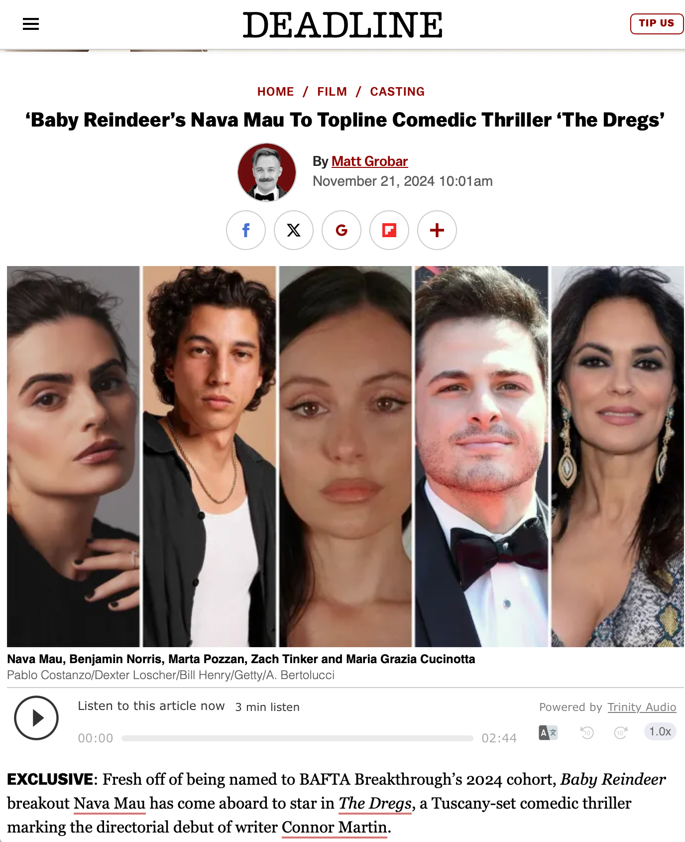 Screenwriter Connor Martin is making his directorial debut with his comedic thriller The Dregs. Shooting in Italy, The Dregs centers on a friends’ trip to Tuscany that gets derailed by old wounds and a cursed bottle of Vin Santo. Connor also made the Black List with his script Golden Boy.